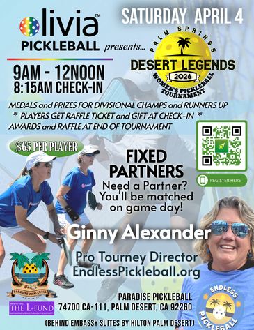 We are excited to once again be part of the 2026 Desert Legends Women's Weekend in Palm Springs. Pickleball is one of the many events being offered that first weekend in April.